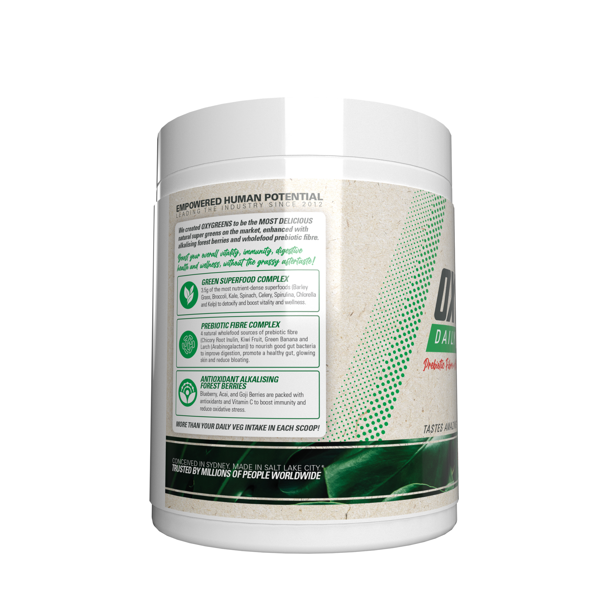 We created OxyGreens to be the MOST DELICIOUS natural, super greens on the market, enhanced with alkalising forest berries and wholefood prebiotic fibre.