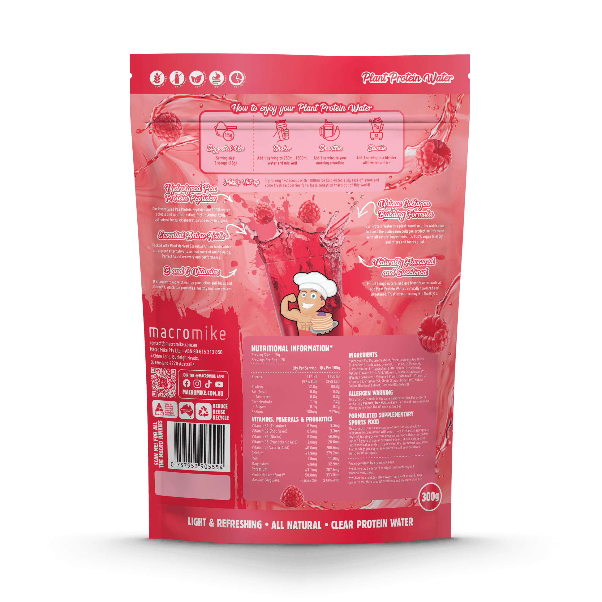 Craving a refreshing, light protein option? Macro Mike Plant Protein Water is here! Packed with hydrolysed plant protein, collagen-supporting peptides, and essential amino acids, this protein water is designed to support hydration and collagen production with every sip.