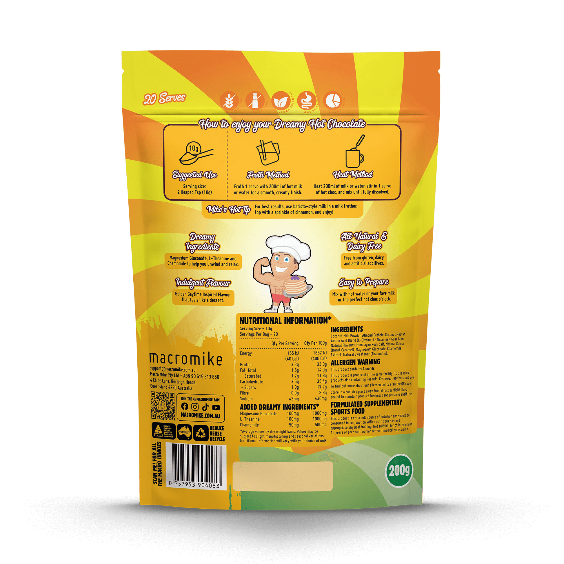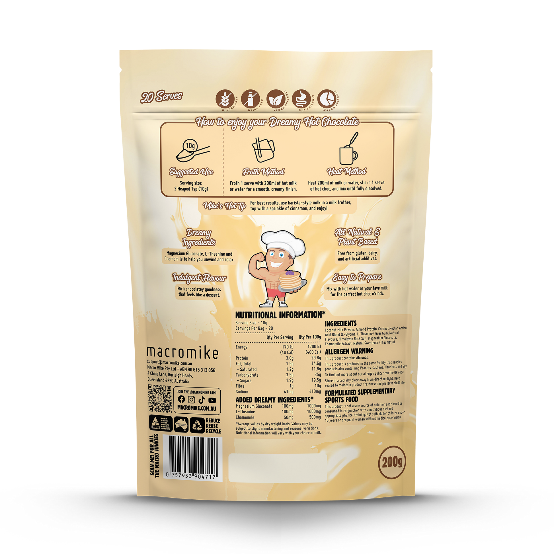 Unwind in style with Macro Mike Dreamy Hot Chocolate—the ultimate better-for-you, bedtime indulgence! 🌙✨ Available in three indulgent flavours, this creamy, dreamy hot chocolate is crafted on our signature Almond Protein and coconut milk powder base for a rich, velvety sip every time.
